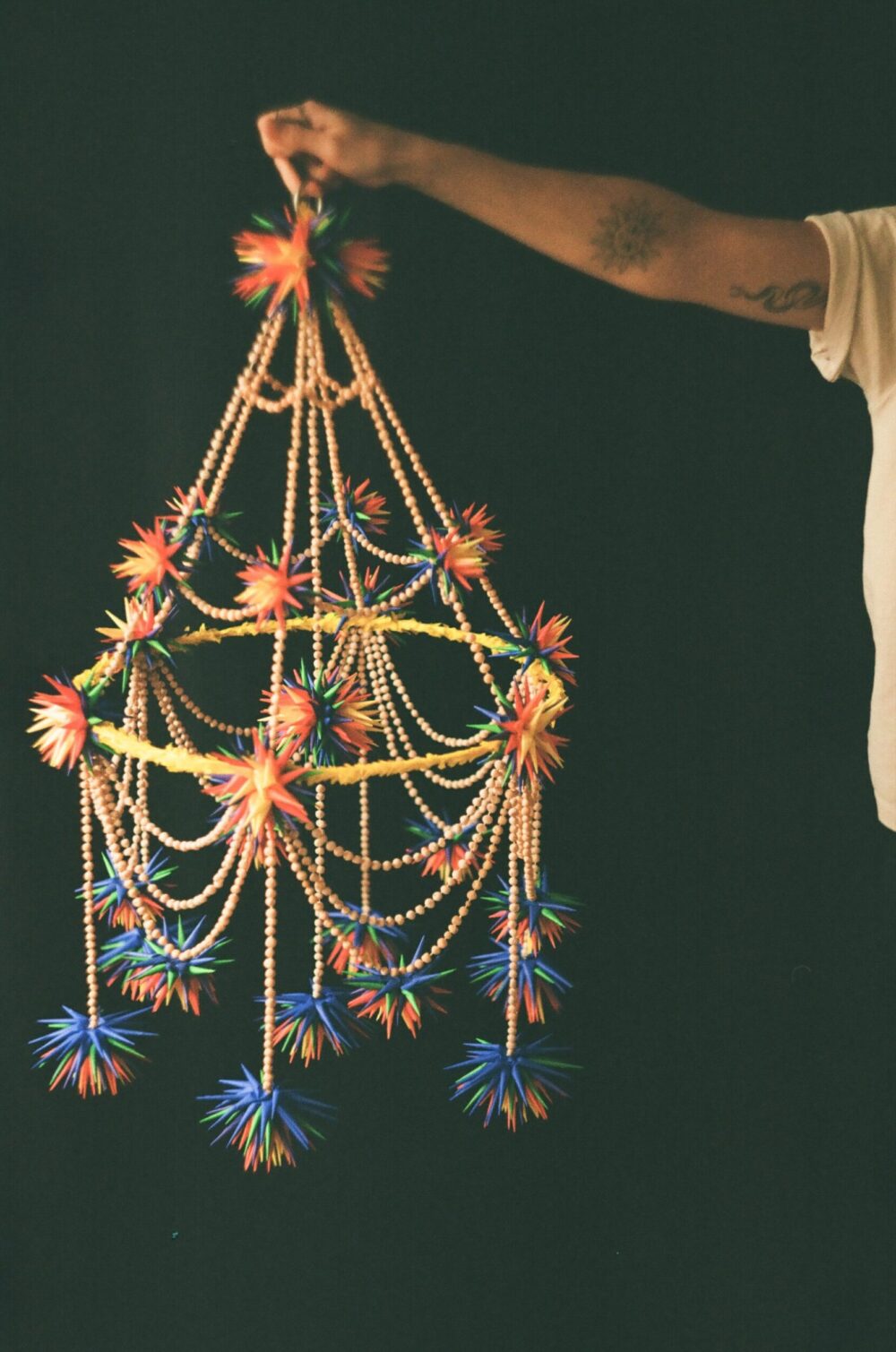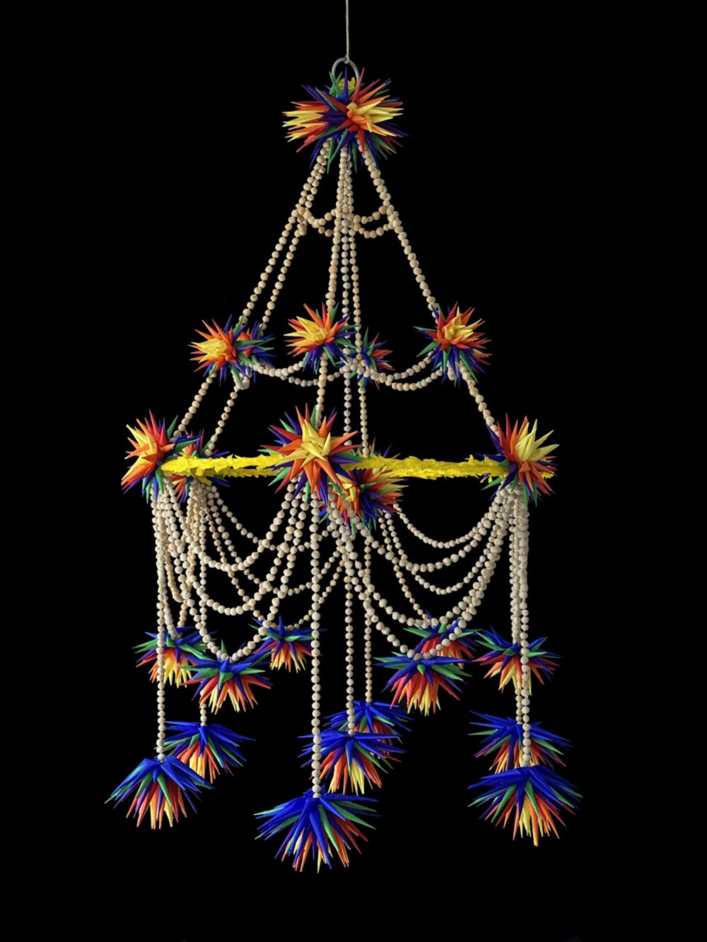 Pająk łowicki z bibuły i grochu.